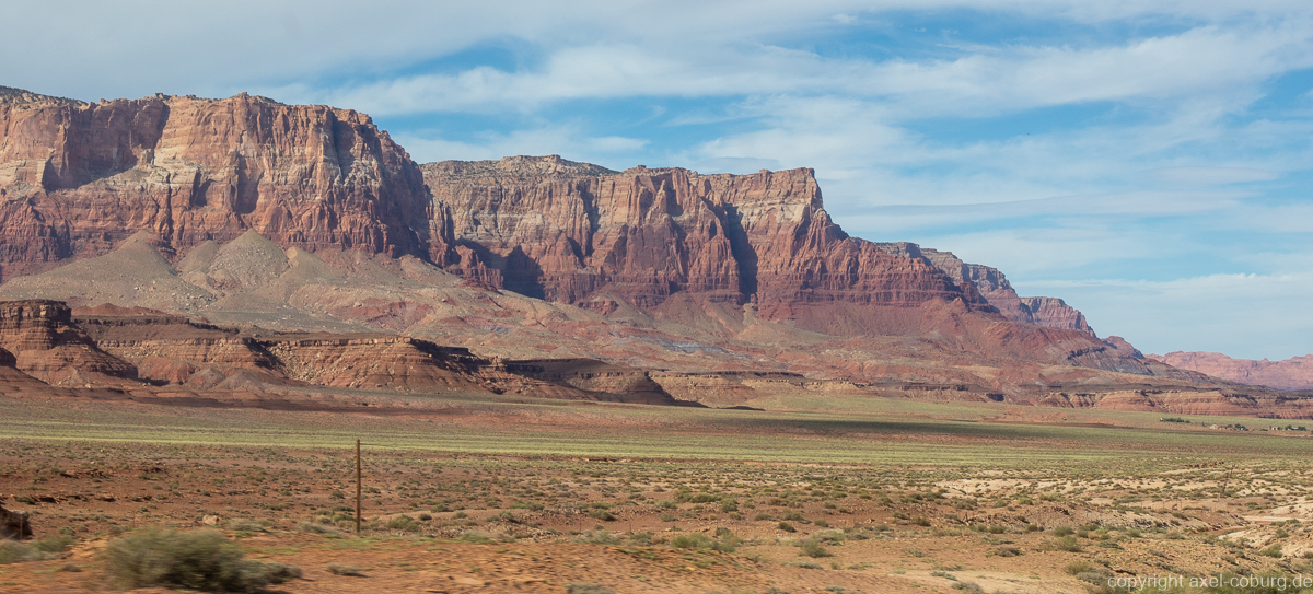 Wir machen uns wieder auf den Weg - ein Stunde erstmal zurück nach Jacobs Lake bevor wir den Highway 89a in Richtung Page nehmen. Durch puren Zufall "stolpern" wir hier noch in ein National Monument - die Vermilion Cliffs...